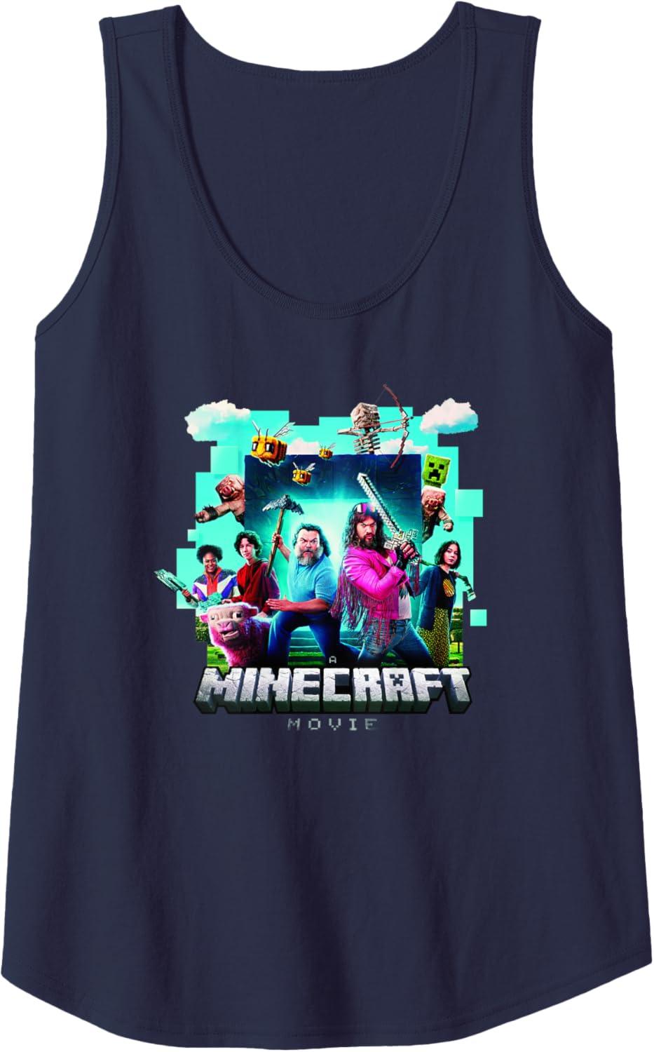 imageA Minecraft Movie Adventure Gang Main Characters Group Shot Tank TopNavy Blue