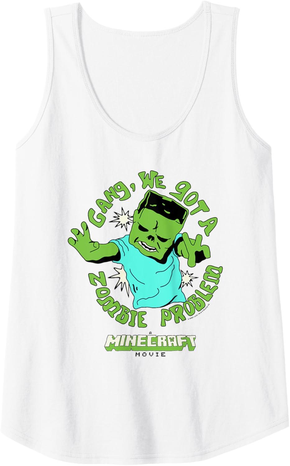 imageA Minecraft Movie Gang We Got A Zombie Problem Cartoon Style Tank TopWhite