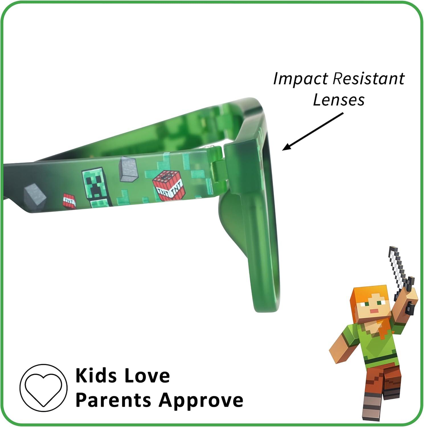 imageARKAID Official Minecraft Boys Sunglasses  UV400  One Size Fits Most KidsGreen