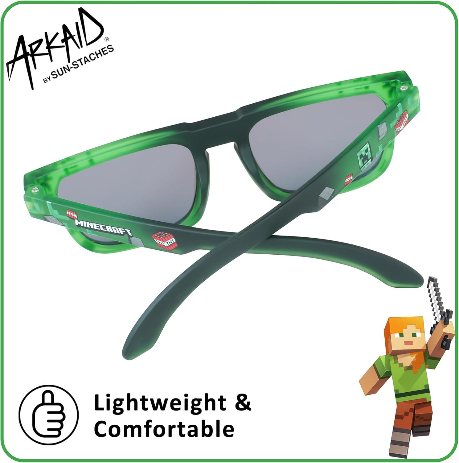ARKAID Official Minecraft Boys Sunglasses | UV400 | One Size Fits Most Kids(Creeper)