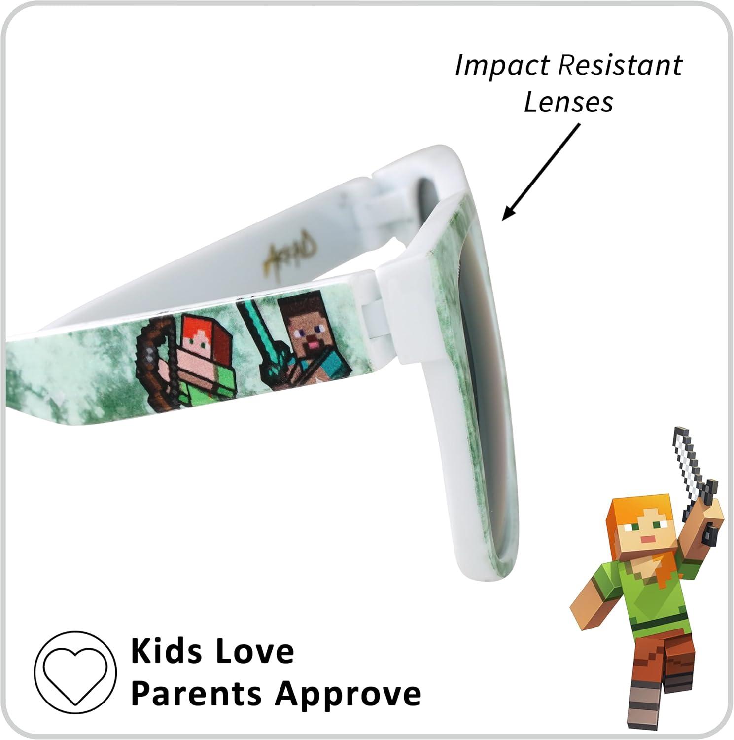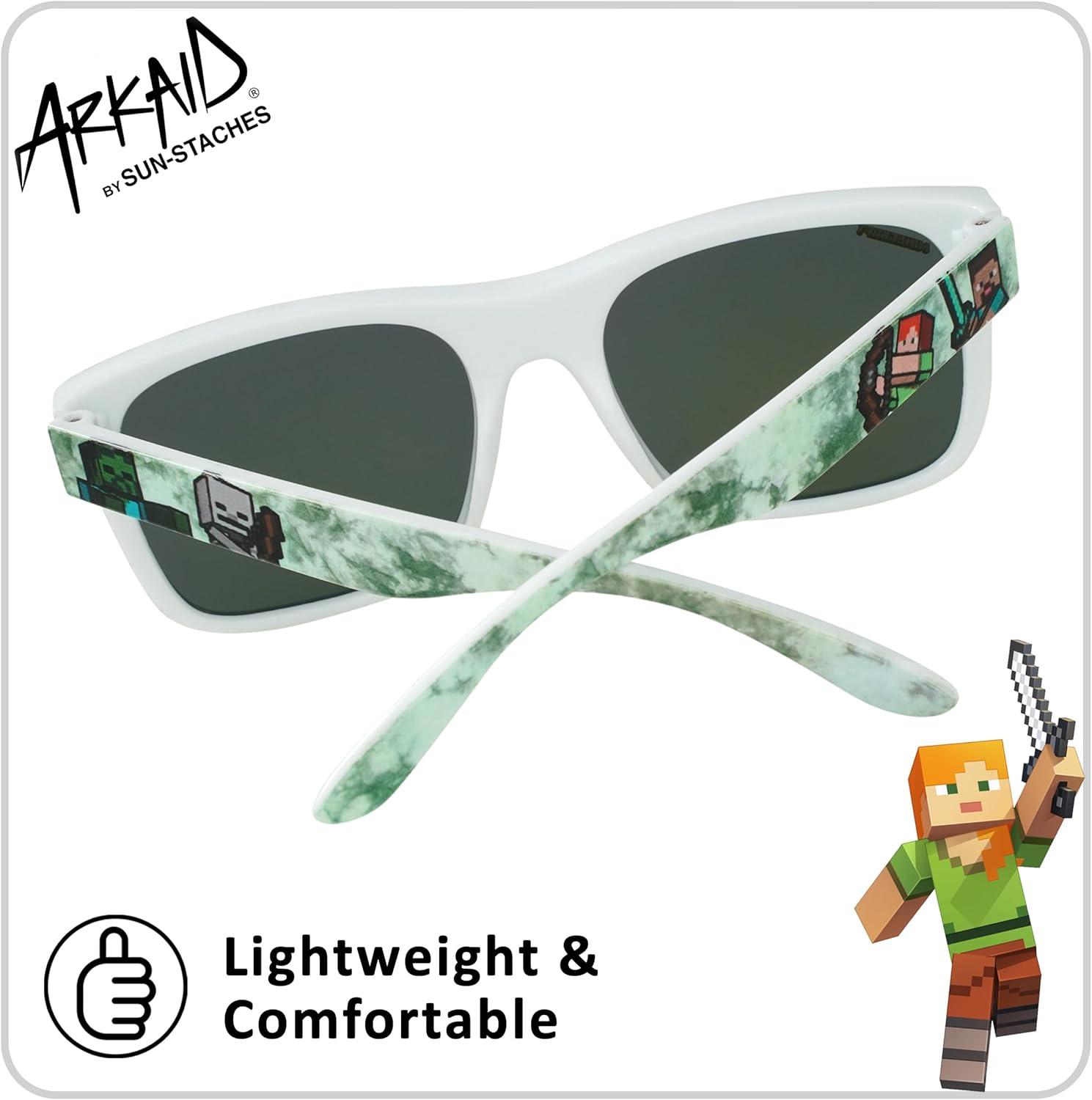 ARKAID Official Minecraft Boys Sunglasses | UV400 | One Size Fits Most Kids(Green and White)
