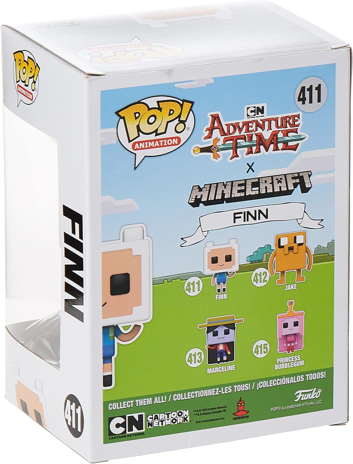 From adventure time, Minecraft Finn, as a stylized pop vinyl from Funko! figure stands 3 3/4 inches and comes in a window display box. Check out the other adventure time figures from Funko! collect them all!